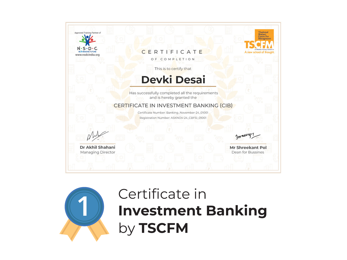 At Thadomal Shahani Centre for Management (TSCFM), we empower you to become a true world beater by offering not just one, but 3 qualifications through our Certificate in Investment Banking program.